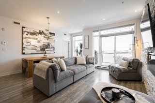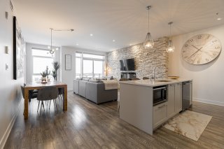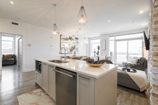 Magnifique appartement d'angle situé au dernier étage à Vaudreuil, offrant plus de 1 000 pieds carrés d'espace de vie lumineux et bien conçu. Cet appartement aménagé avec goût comprend 2 chambres spacieuses et 2 salles de bain complètes, avec des plafonds de 10 pieds et une lumière naturelle abondante dans toutes les pièces. Profitez d'une vue imprenable depuis le balcon privé, idéal pour se détendre ou recevoir. L'appartement comprend deux places de stationnement dans un garage intérieur et un casier, et l'immeuble offre d'excellentes commodités telles qu'une piscine creusée et une salle de sport.